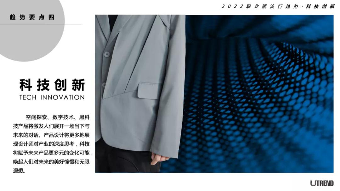 东华大学服装学院职业服研究所发布了2022年职业服流行趋势,此次流行趋势共分为六大主题:“安全健康”、“节约经济”、“经典复古”、“科技创新”、“国潮聚焦”、“可持续时尚”。通过对行业文化背景的分析和职业服流行趋势的宣讲和解读,旨在引导职业服行业和设计朝着安全、实用、多功能以及可持续的方向发展。